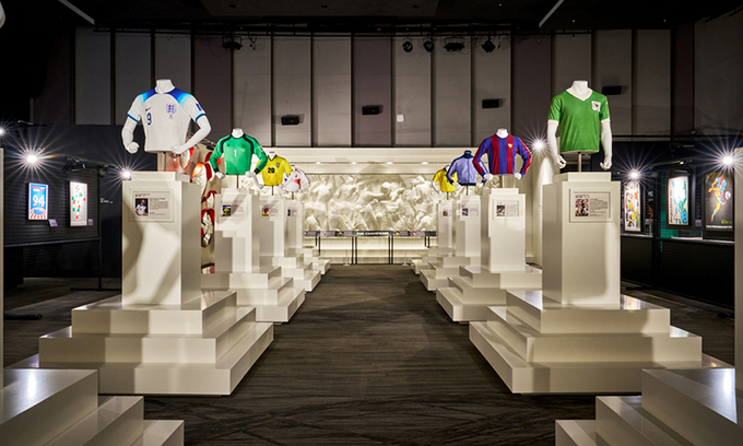 ‘위대한 축구선수 100인’ 중 선별된 21명의 실착 유니폼 전시.