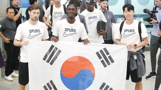 잉글랜드 프로축구 프리미어리그(EPL) 명가 토트넘홋스퍼 선수단이 주장 겸 에이스 손흥민을 필두로 한국 땅을 밟았다. 지난 2022년 이후 2년 만이다.안지 포스테코글루(호주) 감독이 이끄는 토트넘은 28일 오후 인천국제공항을 통해 입국했다. 앞서 일본으로 건너간 토트넘은 하루 전 일본 도쿄국립경기장에서 지난 시즌 J1리그 챔피언 빗셀 고베와 친선경기를 치렀다. 손흥민의 득점포를 포함해 3골을 몰아치며 3-2로 승리를 거둔 뒤 기분 좋게 한국으로 건너왔다.토트넘이 한국을 방문한 건 지난 2022년 쿠팡플레이 시리즈를 통해 팀K리그(K리그 올스타)와 세비야(스페인)를 잇달아 상대한 이후 2년 만이다. 대니얼 레비 회장과 포스테코글루 감독을 선두로 해 인천공항 입국장에 들어선 토트넘 선수단은 미리 기다리..